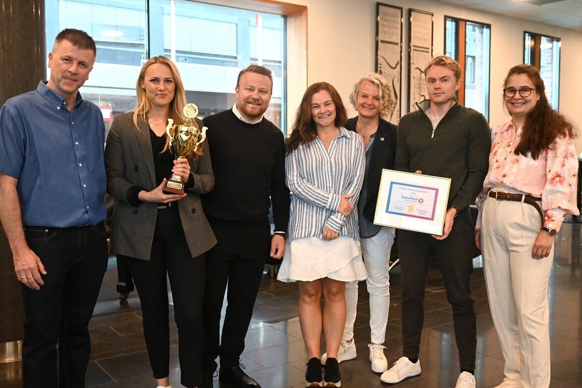 2) Ulrik var med Sparebank 1 Østlandet på Startuplab under Oslo Innovation Week der de jaktet på nye tekniske løsninger til hvordan jobbe mot en bærekraftig fremtid🌟 Her sammen med kollegaer fra Bærekraftsavdelingen og Innovasjonsavdelingen.